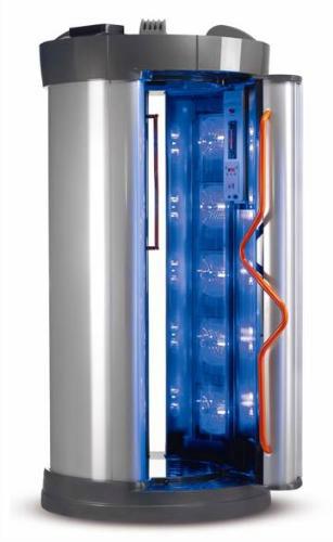 Электронная регулировка обдува лица и тела и стерео радиоприемник с плеером компакт дисков дополняют комфорт этой машины для загара. УФ фильтры оборудованы запатентованной электронной цепью, определяющей возможные неисправности фильтра и подающей световой сигнал при помощи светодиодов, а также прерывающей сеанс.