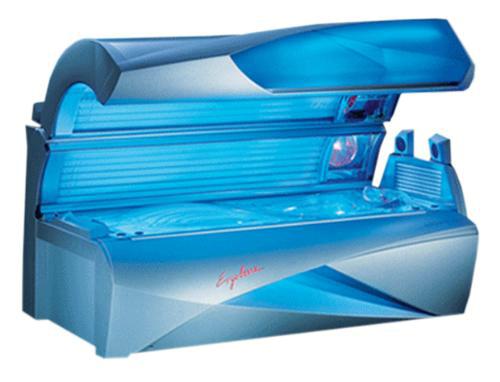 20 облучателей высокого давления, расположенных в верхней и боковой частях солярия, и 19 УФ ламп, расположенных в ложе