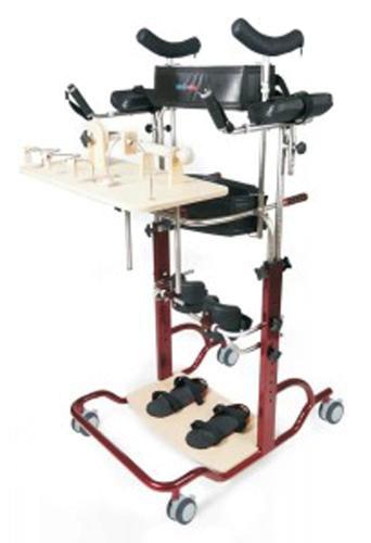 В вертикализаторе установлены поворотные колеса, позволяющие перевозить пациента из палаты на коридор, в другое помещение или наружу в стоячем положении.
