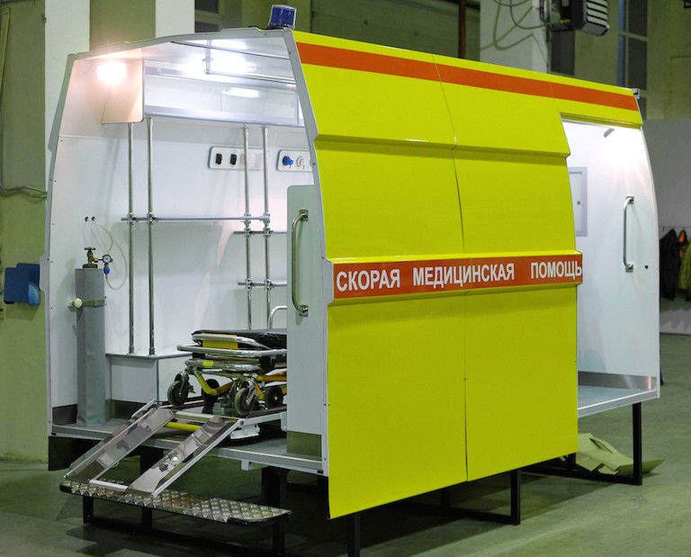 Учебный модуль АСМП - Мы производим различные виды сборно-разборных макетов реанимобилей – от наиболее простых до абсолютно точных копий самых современных АСМП с полным комплектом медицинского оборудования и приборов.