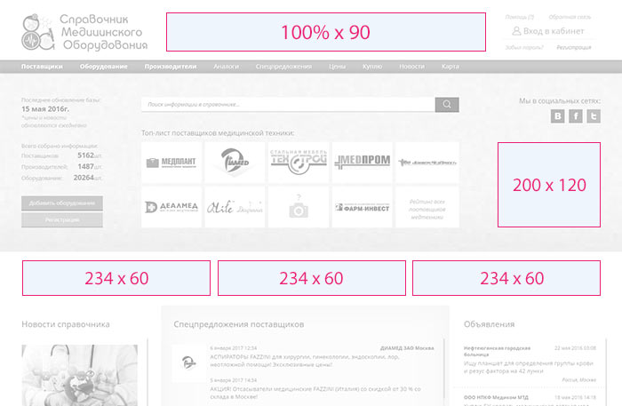 - блок (например: главная: 100%x90)